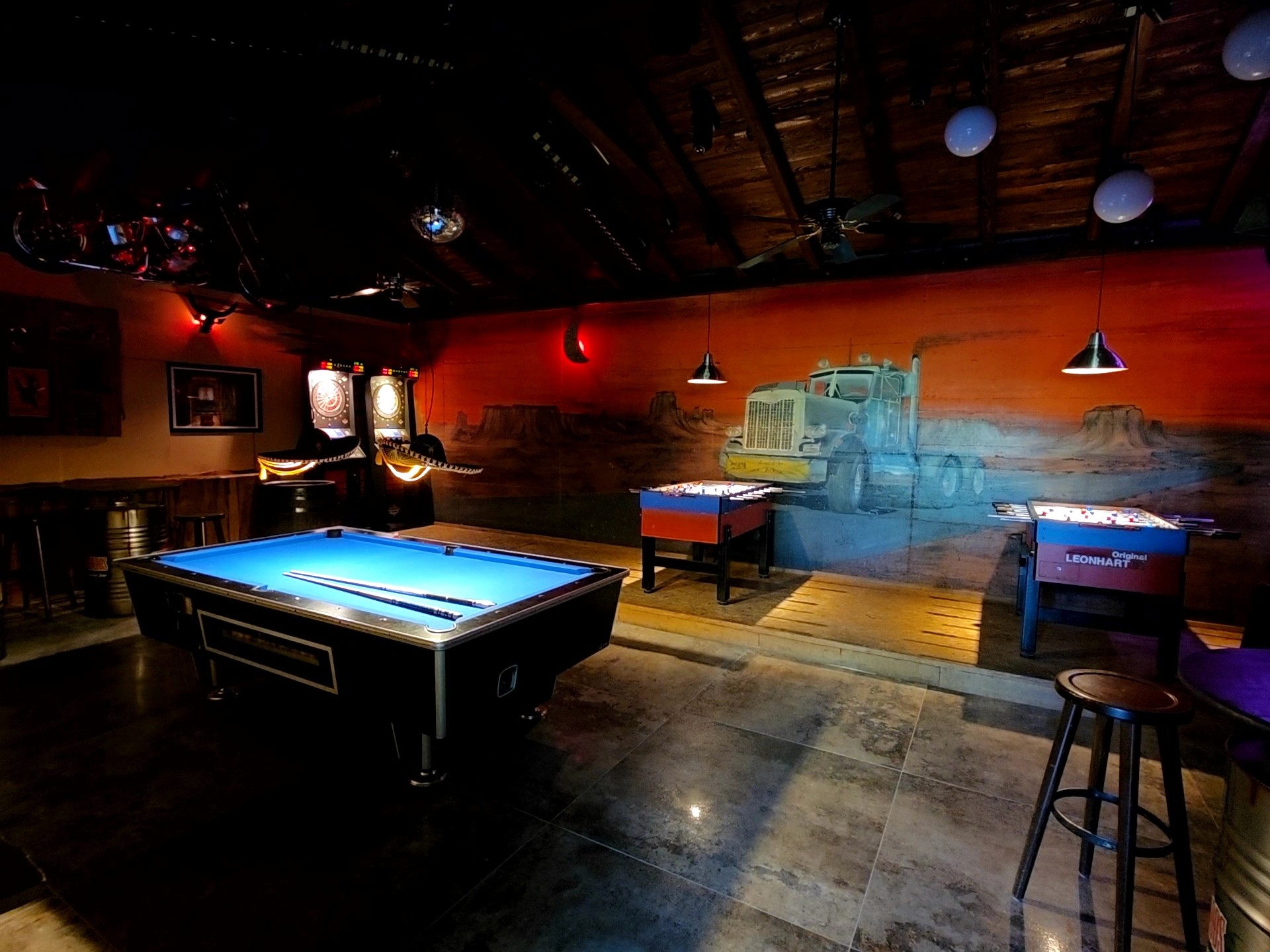 Billard, Dart und Tischkicker sind vor Ort vorhanden.
